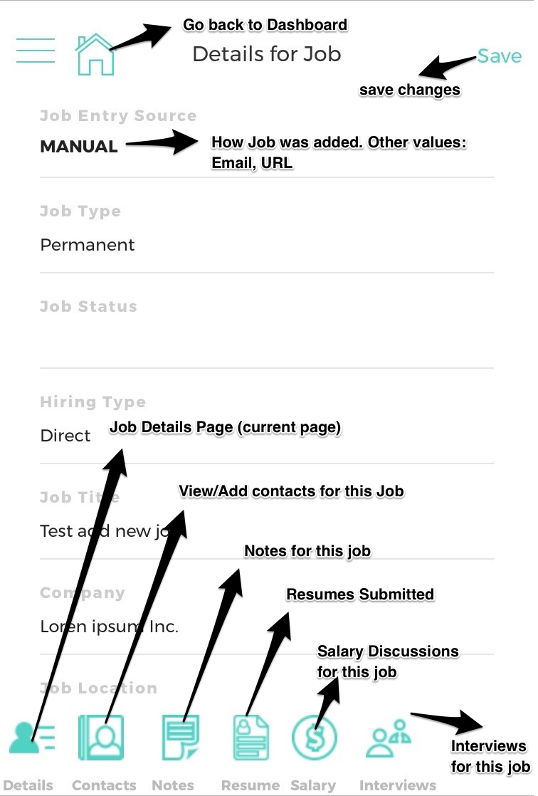 Interviews Page: Keep track of when and where you interviewed. Also save interview specific notes.